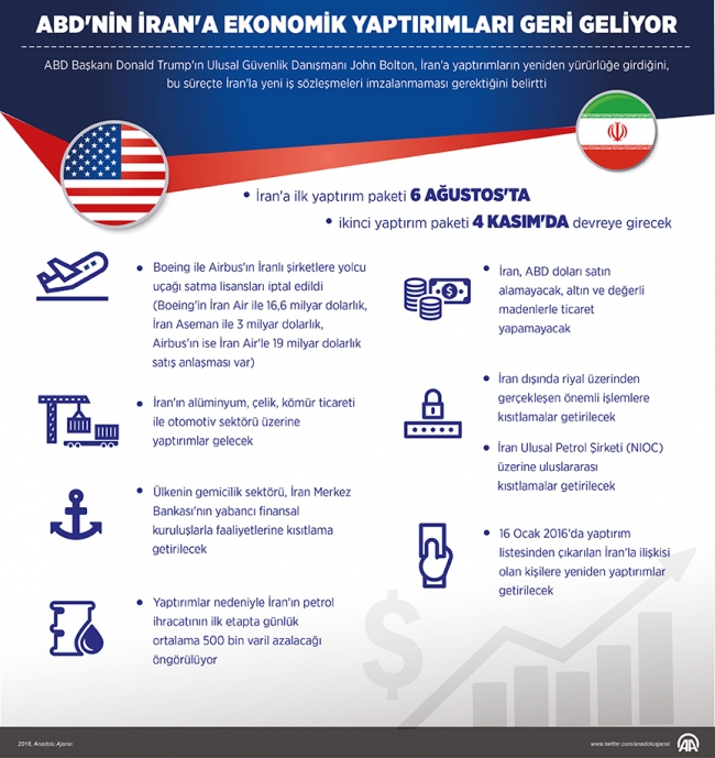 ABD Hazine Bakanlığı'ndan dün yapılan açıklamada da İran'a yönelik yaptırımların 90 ve 180 günlük periyotlarla yeniden uygulanmaya başlanacağı duyuruldu.