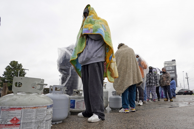 [Houston, Teksas'ta elektriksiz ve susuz kalan insanlar çare aradı. Metrelerce tüp kuyrukları oluştu. Fotoğraf: AP]Elektrik, su, internet birden gitti, tüp kuyrukları görüldü