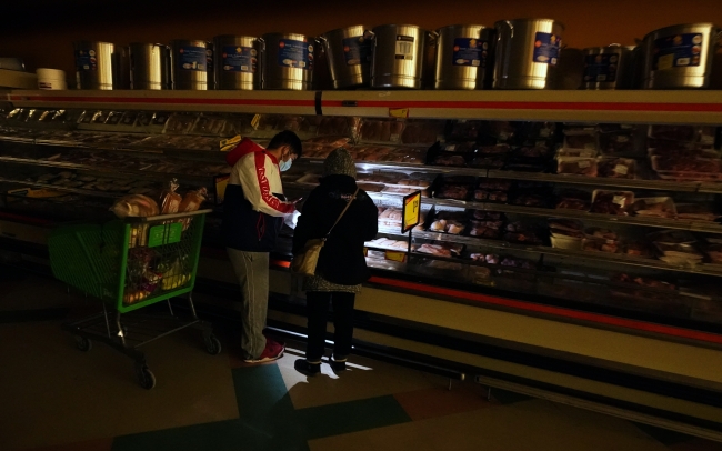 [ABD'de kış koşullarına bağlı elektrik kesintilerinden en çok etkilenen Teksas eyaletinin Dallas kentindeki bir marketten alışveriş yapmaya çalışanlar cep telefonlarının ışığını kullandı. Markette sadece nakit ödeme kabul edildi. Fotoğraf: AP]Santraller, türbinler dondu