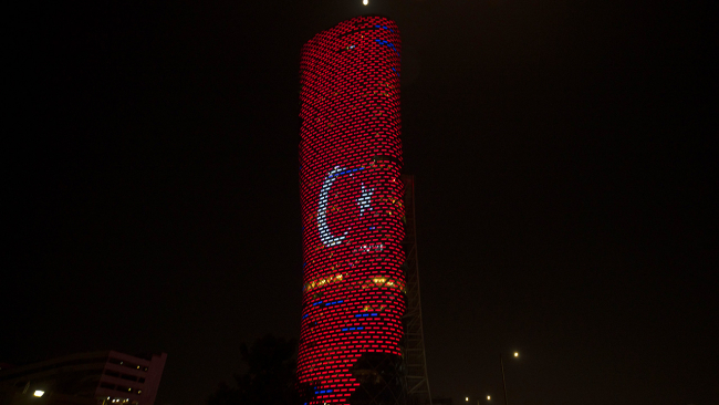 Cumhurbaşkanı Recep Tayyip Erdoğan'ın resmi temaslarda bulunmak üzere gittiği Abu Dabi'de, kentin sembol binaları Türk bayrağı görseliyle ışıklandırıldı.
