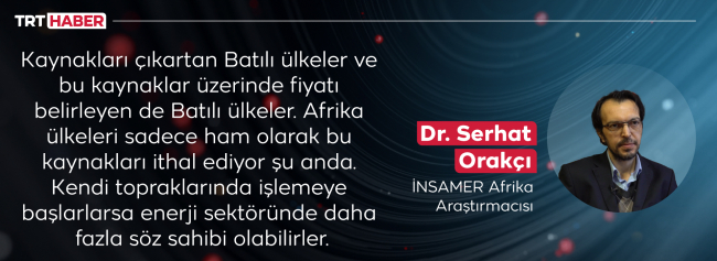 Dr. Orakçı, kıtanın kendi kaynakları üzerinde tam anlamıyla söz sahibi olmadığını, bugün daha çok ham madde ithalatçısı konumunda olduğunu söylüyor ve küresel aktörlerin de bu alanlara nüfuz etme yarışı içinde olduğu ekliyor.