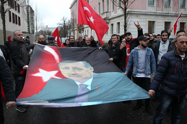 Bu sırada karşıt gösteri yapmak isteyen bir grup Türk, kendilerine ayrılan bölüme polis eşliğinde gitti.