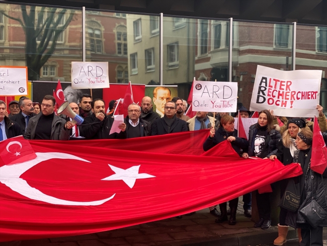 Almanya Köln'ün Appellhofplatz semtindeki ARD'nin merkez stüdyoları önünde bir araya gelen yaklaşık 100 kişi, televizyonda yayınlanan belgeseli protesto etti.