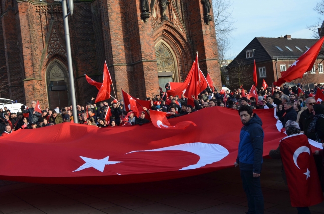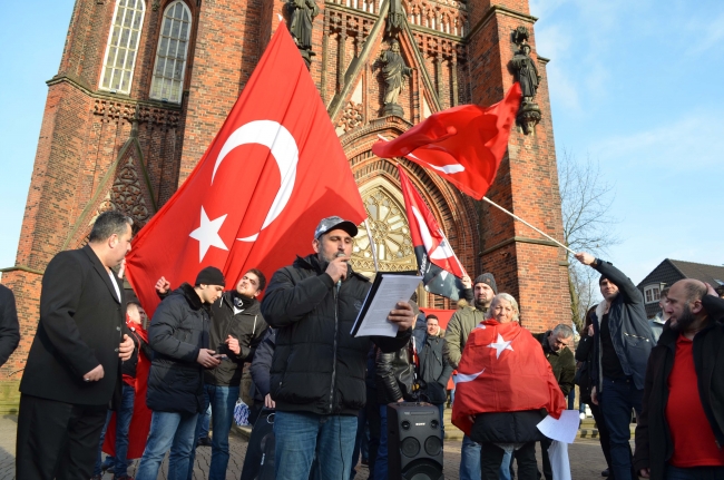 Bremerhaven merkezindeki Büyük Kilise Meydanı'nda düzenlenen gösteriye, Bremerhaven ve çevre illerinden yaklaşık 1500 Türk katıldı.