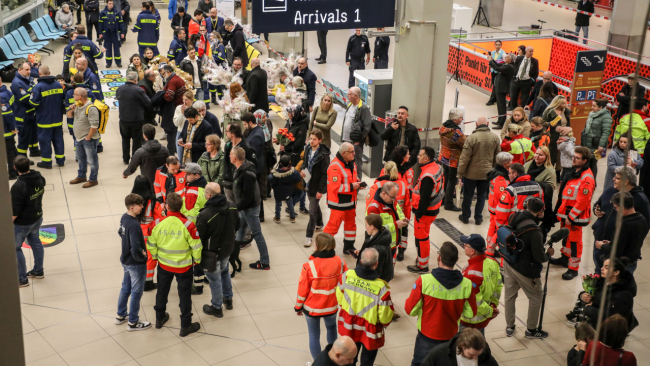 International Search and Rescue (ISAR) ile Alman Federal Teknik Yardım Kurumuna (THW) bağlı arama kurtarma ekiplerinden oluşan yaklaşık 100 kişi, dönüşlerinde Köln-Bonn Havalimanı'nda Türkiye'nin Köln Başkonsolosu Turhan Kaya'nın yanı sıra kalabalık bir grup tarafından Türk-Alman bayrakları ve yollara serilen çiçeklerle karşılandı.