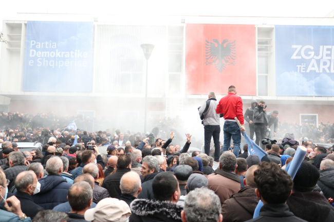 Arnavutluk'un eski Başbakanı Sali Berişa'nın çağrısıyla Arnavutluk Demokratik Partisi (PD) Genel Merkezi önünde toplanan göstericiler, binanın kapı ve pencerelerini kırarak içeri girdi.