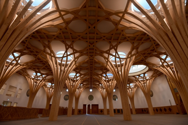 Çoğunlukla ahşap ve mermer gibi doğal malzemelerin kullanıldığı cami, ayrıca sıfır karbon ayak izi özelliğiyle de dikkat çekiyor.