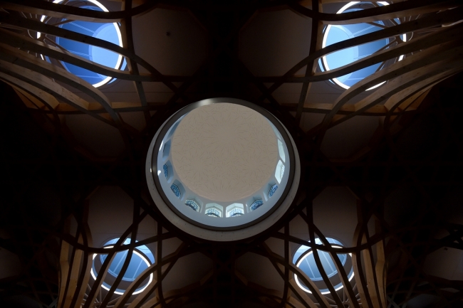 "Bunun temel amaçlarından biri insanların ilgisini namaza yöneltmek. Yine çevre dostu özelliğinden dolayı yukarıdan ışık almak ve güneş ışınlarını doğrudan cami içerisine yansıtmak için pencereler kubbe şeklinde caminin tavanına yerleştirildi."