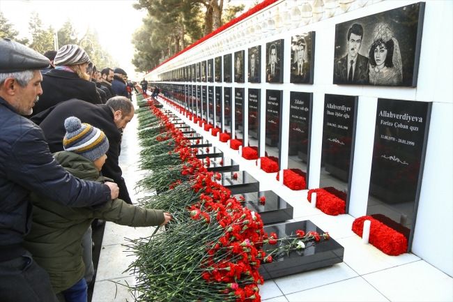 Azerbaycanlılar, bugün de 1990'da yaşanan katliamda hayatını kaybedenleri anmak için Bakü Şehitler Hiyabanı'na akın etti. Bakü ve diğer bölgelerden gelenler şehitlik önünde uzun kuyruklar oluşturdu. Mezarlara kırmızı karanfiller bırakan vatandaşlar, şehitler için dua etti.