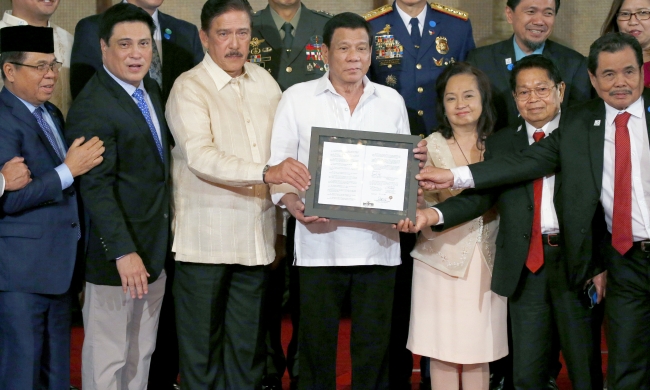 Malacanang Sarayı’nda düzenlenen törende yasayı MİKC lideri El Hac Murad İbrahim’e teslim eden Duterte, burada yaptığı konuşmada, “on yılların çatışmasını sonlandırdıklarını" söyledi.