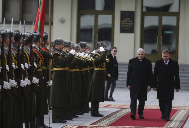 Yıldırım, Belarus Başbakanı Kobyakov tarafından resmi törenle karşılandı