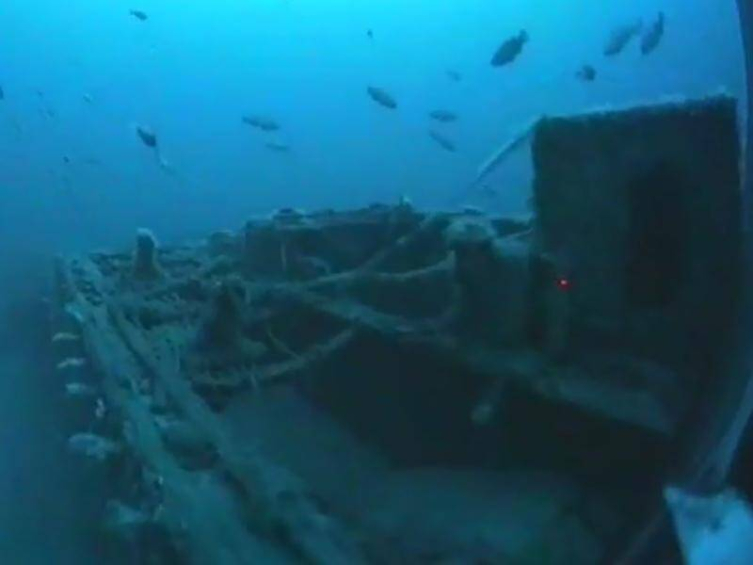 Enkaz büyük ölçüde sağlam ve deniz tabanında, yüzeyin 170 metre altında dik bir şekilde bulundu.