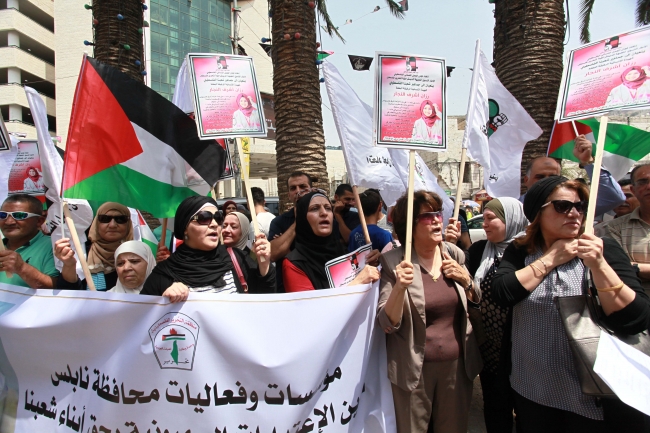 Gösteriye katılan Filistin Demokratik Halk Kurtuluş Cephesi (FDHKC) üyesi Macide el-Mısri, Filistin halkı için canını feda eden Rezzan en-Neccar'la gurur duyduklarını ifade için burada olduklarını belirtti.