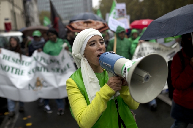 Protestocular, hükümetin emeklilik yaşını yükselten ve kıdem tazminatlarını değiştiren düzenlemesine tepki gösterdi.