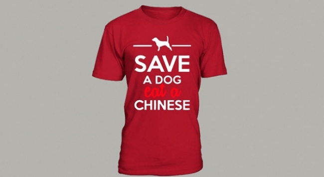 Şinhua haber ajansı, Çin'in Berlin Büyükelçiliğinin, üzerinde İngilizce "Bir köpeği kurtarın, bin Çinli yiyin" ve "Bir köpek balığını kurtarın, bir Çinli yiyin" yazılı tişörtlerin internetten satışının durdurulması için Alman makamlarını göreve davet ettiğini belirtti.