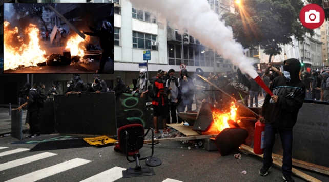 Rio de Janeiro'da sabah saatlerinde Novo Rio Otobüs Terminali önünde toplanan göstericiler ile polis arasında çatışma çıktı.