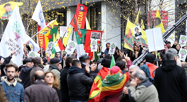 Belçika makamlarının izni alınarak yapılan gösteri için Avrupa'nın birçok ülkesinden otobüslerle getirilen terör örgütü yandaşları, Kuzey Tren İstasyonu'ndan Brüksel’deki AB Komisyonu ve AB Konseyi binalarının önündeki Schuman Meydanı’na kadar yürüdü.