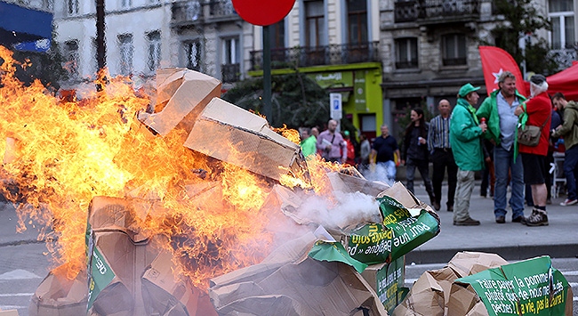 Başkent Brüksel'in merkezindeki Botanik Bahçe çevresinde öğlen saatlerinde bir araya gelen binlerce sendika üyesi işçi, yaklaşık 4 kilometre uzaklıktaki Midi Tren İstasyonu'na kadar yürüdü.