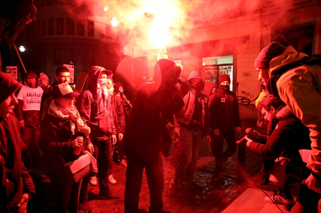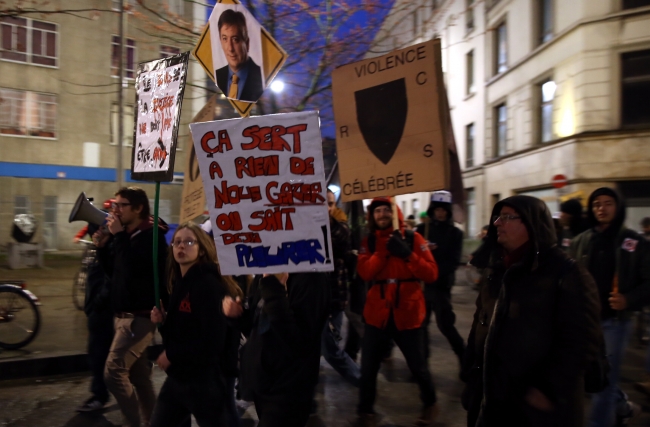 Brüksel'de Annesence Meydanı'nda toplanan yaklaşık 200 kişi, “polis şiddetine karşı dur de” yazılı pankartlarla yürüyüş yaptı.