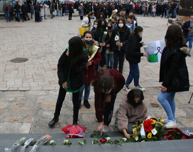 Ardından yaklaşık bin 700 öğrenci okulun önünden Eski Üsküp Çarşısında bulundan "İskenderbey" meydanına doğru dayanışma yürüyüşü gerçekleştirdi. Öğrenciler burada çiçek bıraktı ve arkadaşlarını andı.