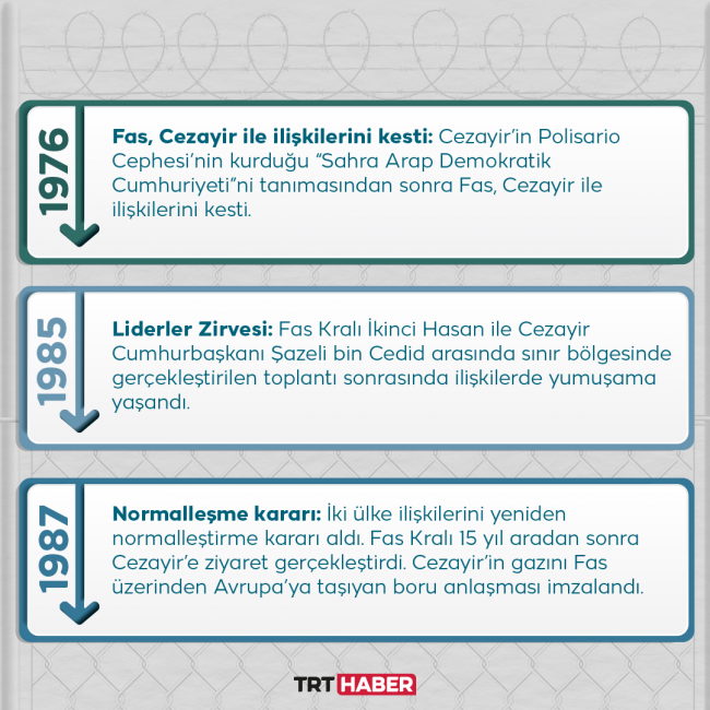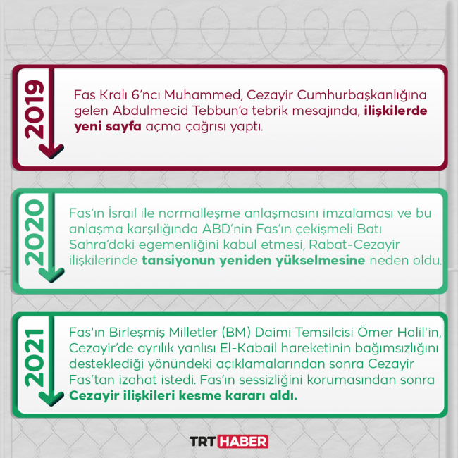 Zaten Fas’ın 2020’de Moritanya sınırında yer alan silahtan arındırılmış bölgedeki Kerkerat sınır kapısına yönelik operasyon başlatmasından sonra Cezayir, Fas ile sınır bölgelerinin tamamında operasyonel ve askeri kuvvetlerini tahkim etmişti.