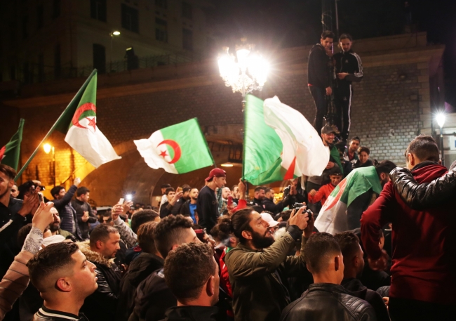 Cezayir'in yerel televizyon kanallarının, başkent Cezayir'den yayınladığı görüntülerde, sınırlı sayıda Cezayirlinin Maurice Audin Meydanı'nda kutlama yaptığı görüldü.