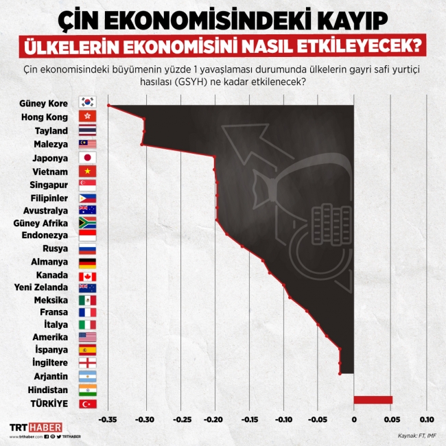 24 ülke arasında Gayri Safi Yurtiçi Hasılası artacak tek ülke ise, yüzde 0,05 büyüme ile Türkiye olacak.