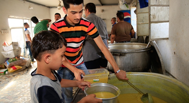 Aşevinde, Ramazan ayı boyunca her gün yaklaşık 500 kişilik iftar yemeği pişiriliyor. Bu yemekler, DEAŞ saldırıları ve yaşanan çatışmalar nedeniyle ülkenin çeşitli yerlerinden gelen iç göçmenlerle yoksullara dağıtılıyor.