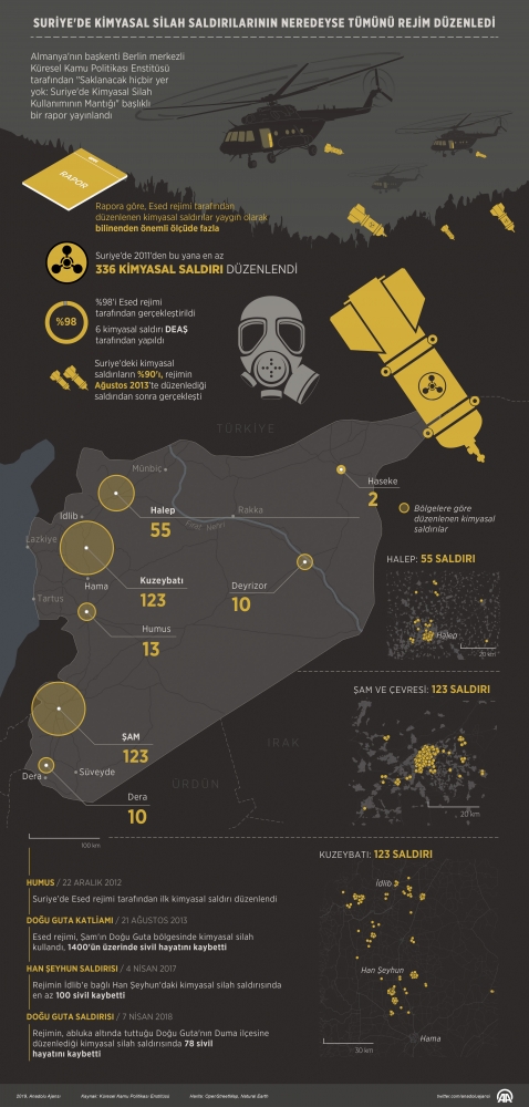 Berlin merkezli Küresel Kamu Politikası Enstitüsü tarafından "Saklanacak hiçbir yer yok: Suriye'de Kimyasal Silah Kullanımının Mantığı" başlıklı bir rapor yayımlanmıştı.