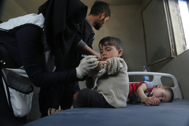 Suriye'de sağlık alanında çalışmalar yürüten Suriye Aşı Ekibi, Hama, İdlib ve Halep'te muhaliflerin kontrolündeki alanlarda yaşayan 6 ay-5 yaş aralığındaki çocukların aşılanması için kampanya hazırladı.