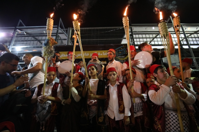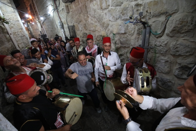 Mescid-i Aksa'da kılınan teravih namazından sonra işgal altındaki Doğu Kudüs'ün surlarla çevrili eski şehirdeki Şam Kapısı, Sahire Kapısı, Yeni Kapı ile Harem-i Şerif'in Meclis Kapısı'ndan geçen Filistinli çocuk ve gençler, ellerindeki kandillerle eski şehrin sokaklarında gezdi.