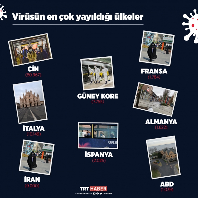 Çin dışında salgının en çok can kaybına yol açtığı ülkeler İran, İtalya ve Güney Kore oldu. Birçok ülke, salgının çok yayıldığı ülkelerle uçuşları durdurdu. İtalya geneli kırmızı bölge ilan edildi.