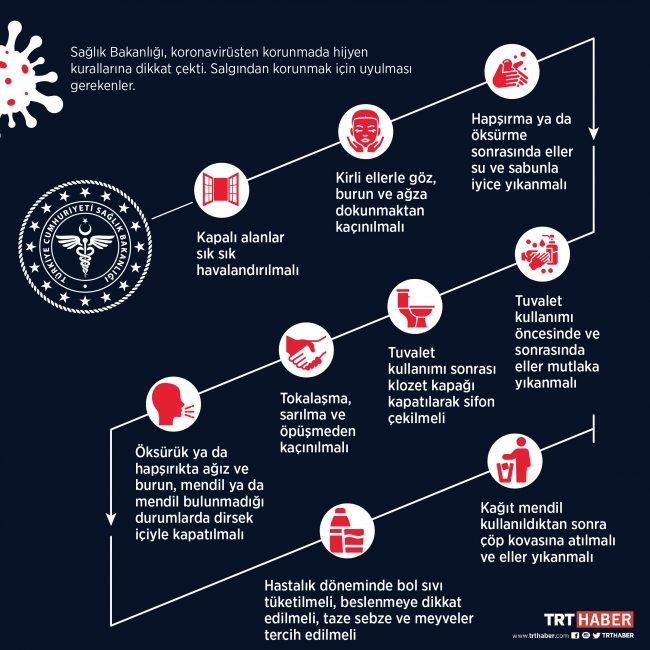 Sağlık Bakanlığının şubat ayında paylaştığı bilgi notunda, koronavirüsten korunma yolları şöyle sıralandı: