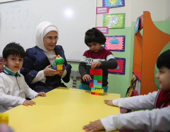 Ziyarette Emine Erdoğan'a, Dışişleri Bakanı Mevlüt Çavuşoğlu'nun eşi Hülya Çavuşoğlu, Milli Savunma Bakanı Hulusi Akar'ın eşi Şule Akar ve Ulaştırma ve Altyapı Bakanı Mehmet Cahit Turhan'ın eşi Meral Turhan da eşlik etti.