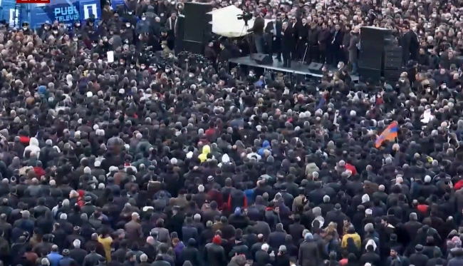 Nikol Paşinyan, düzenlediği yürüyüşün ardından, Cumhuriyet Meydanı'nda destekçisi 20 bin kişiye seslendi.