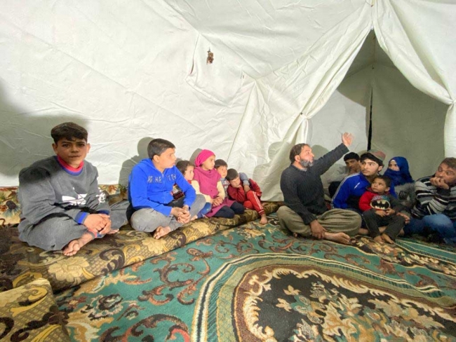 Ömer Sıddık, 12’si çocuk 25 kişiye bakmakla yükümlü bir baba. Beşşar Esed rejiminin bombardımanı yüzünden 5 kez yerinden edildi. Yıllardır evinden uzakta. Birkaç hafta önce sığındığı Etarib ilçesinden de kaçmak zorunda kaldı. Rejim güçleri Etarib’i ateş altına aldı. Ömer’in evinin çevresine roketler düşmeye başladı. Çocuklarına sarıldı. Gecenin bir yarısı, her yer ateş altında; “Sabaha kadar bekleyelim. Ölmezsek kaçarız”.