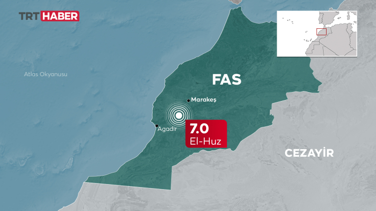 Fas Ulusal Jeofizik Enstitüsü, Marakeş kentinde meydana gelen 7 büyüklüğündeki depremin ülke tarihinde son yüzyıldaki en büyük deprem olduğunu duyurdu.