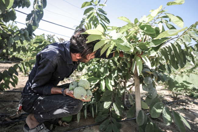 Filistinli genç, bakımı dikkat ve zahmet isteyen tropik meyveyi ailesiyle birlikte yetiştirerek kazanç sağlamaya çalışıyor.