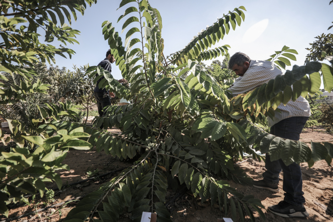 İsrail ablukası altındaki Gazze'de yaşayan Luey Dahduh, yaklaşık 3 yıl önce Gazze Şeridi’nin güneyindeki topraklara ektiği tarçın elmasının ürünlerini alıyor.