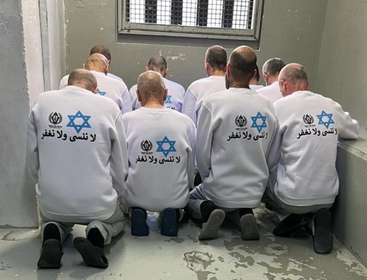 İsrail Hapishane Servisi (IPS) bugün, mahkumlar anlaşmasının altıncı aşamasının bir parçası olarak serbest bırakılan Filistinli tutukluların, "Unutmayacağız ve affetmeyeceğiz" yazılı ve Davut Yıldızı sembolü olan tişörtler giyen fotoğraflarını dağıttı.