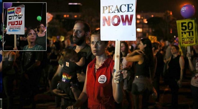 Barış Şimdi (Peace Now) ve diğer bazı İsrailli sivil toplum kuruluşları ile sol görüşlü siyasi partilerin katılımıyla düzenlenen gösteride, Binyamin Netanyahu liderliğindeki İsrail hükümeti ve İsrail'in Filistinlilere yönelik uygulamaları protesto edildi.