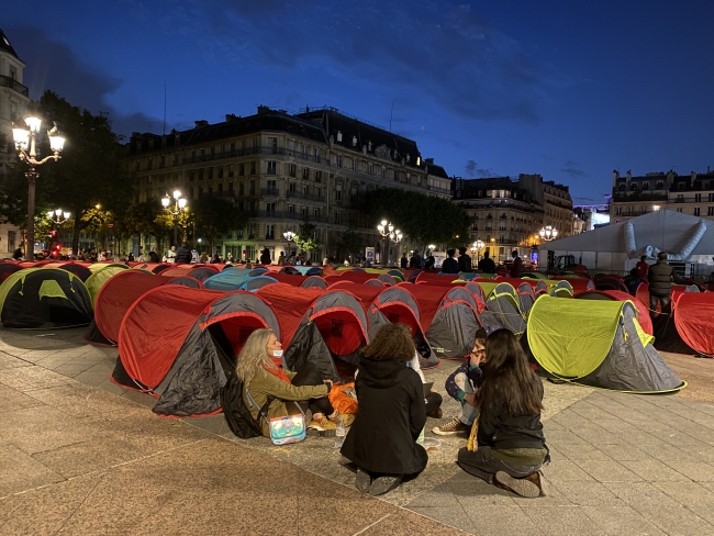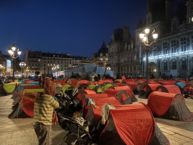 Fransa'da Paris Belediyesinin önünde, yardım derneklerinin tahsis ettiği çadırlarla alana yerleşen ve refakatsiz çocuklar ile çocuklu ailelerin de bulunduğu ve çoğunluğu Afrikalı ve Afganistanlılardan oluşan 300'den fazla düzensiz göçmen, Fransız yetkililerden çözüm bekliyor.