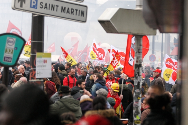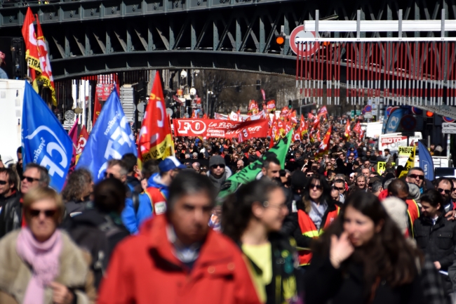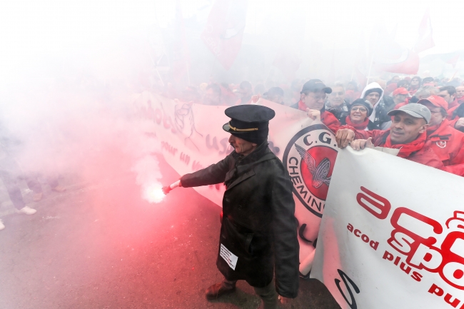 Başkent Paris'te Doğu Tren Garı'ndan Bastille Meydanı'na doğru yürüyen 35 bin demiryolu çalışanı, Nation Meydanı'nda toplanarak Bastille'e yürüyen 14 bin kamu çalışanıyla birleşti. Demiryolu çalışanlarının yürüyüşünde çıkan şiddet olayları nedeniyle polisin tazyikli su ve göz yaşartıcı gaz kullandığı, göstericilerin bir aracı yakarak çok sayıda işyerine zarar verdiği kaydedildi.