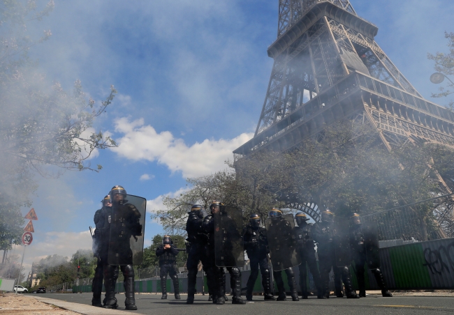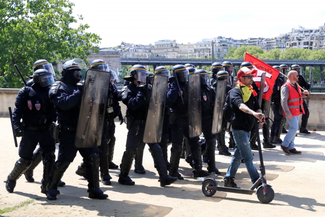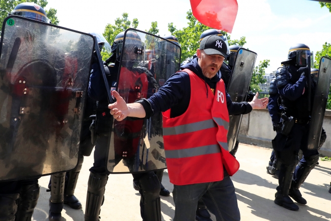 Fransa'da Emmanuel Macron'un ekonomik reformlarına karşı çıkan protestocuların yürüyüşü polisler tarafından engellendi.