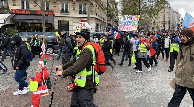 Eylemciler, Paris'te Estienne-d'Orves Meydanı'ndan başkentin banliyölerinden La Defense'a kadar yürüdü. Yaklaşık 300 kişinin katıldığı ve yoğun güvenlik önlemlerin alındığı gösteride bir kişi gözaltına alındı.