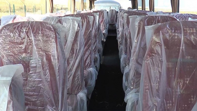 Sığınmacıları taşımak üzere devlet tarafından tahsis edilen yüzlerce otobüsün koltuklarının, hijyen gerekçesiyle kalın ve şeffaf bir plastikle kaplanmış olduğu görüldü.