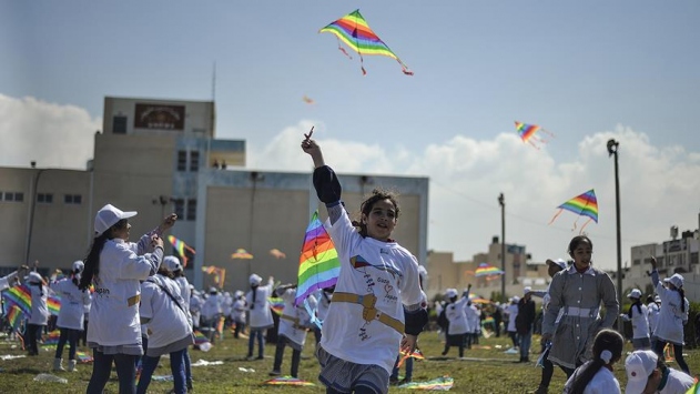 Gazzeli çocuklar, Japonya'da 2011'de yaşanan deprem ve tsunami felaketini yüzlerce uçurtma uçurarak andı.