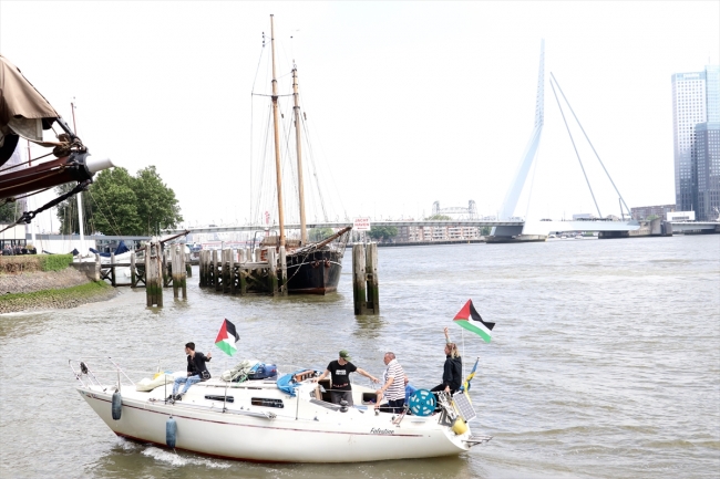 "Falestina" ve "Mairead" tekneleri bugün geldikleri Rotterdam'dan, bir sonraki durakları olan Belçika'nın Brüksel kentine bir grup tarafından uğurlandı.