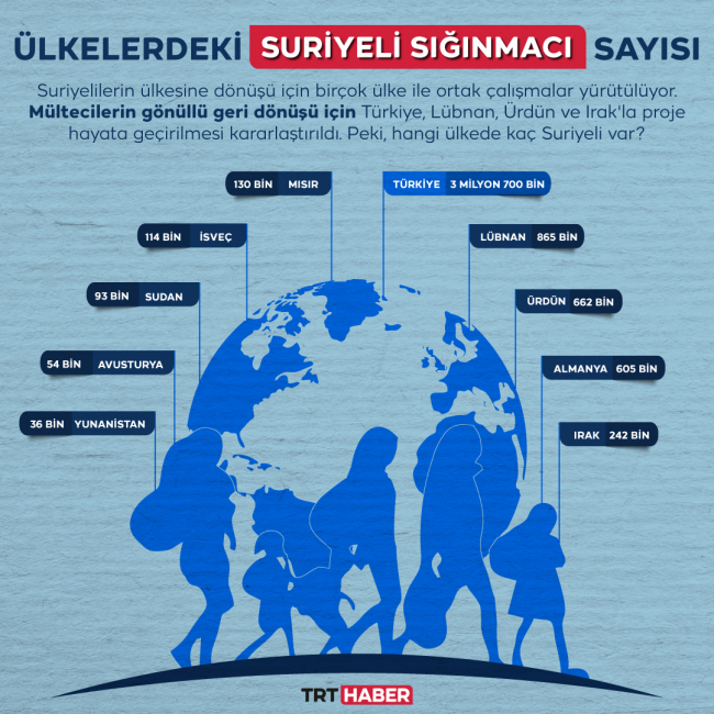 Türkiye'de 3 milyon 700 bin Suriyeli mülteci bulunuyor.