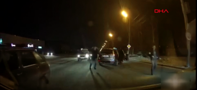 [Fotoğraf: DHA]Polis memuru 3 kilometre boyunca, süratle giden aracın üzerinde kaldı. Bu sırada takipte olan diğer polis ekipleri çalınan aracın tekerine ateş ederek, aracı durdurmayı başardı ve hırsızları gözaltına aldı.